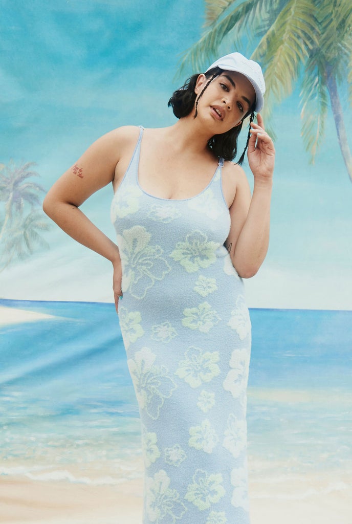 The brand has kept a steady hand on its sustainability practises from day one, by creating two seasonal collections a year, setting a slower pace to research, course and invent new sustainable fabrics and manufacturing methods, while its pre-order system means nothing is wasted. Priced from around £40 to £250, beyond its cult and kitsch aesthetic, the House of Sunny’s success can be attributed in some part to hitting the sweet spot of affordability, much like contemporary counterparts Rixo, Reformation, GANNI and With Jéan. Though the brand’s size offering is currently very limited to UK 6-14, its cult Hockney dress is available up to size 16 and it’s expanding the knitwear range soon.
