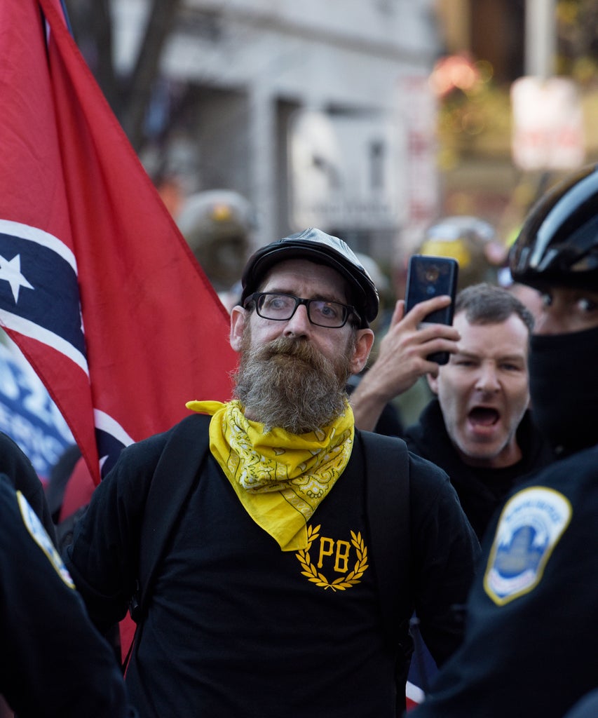 Featured prominently at the Stop the Steal protest were the Proud Boys — a white supremacist militia group who President Trump has given shoutouts to before, explicitly telling members to “stand back and stand by” during the first presidential debate. The group is known to be friendly with police, though Tuesday night, protesters got in a massive fight with officers ahead of Wednesday’s demonstration.