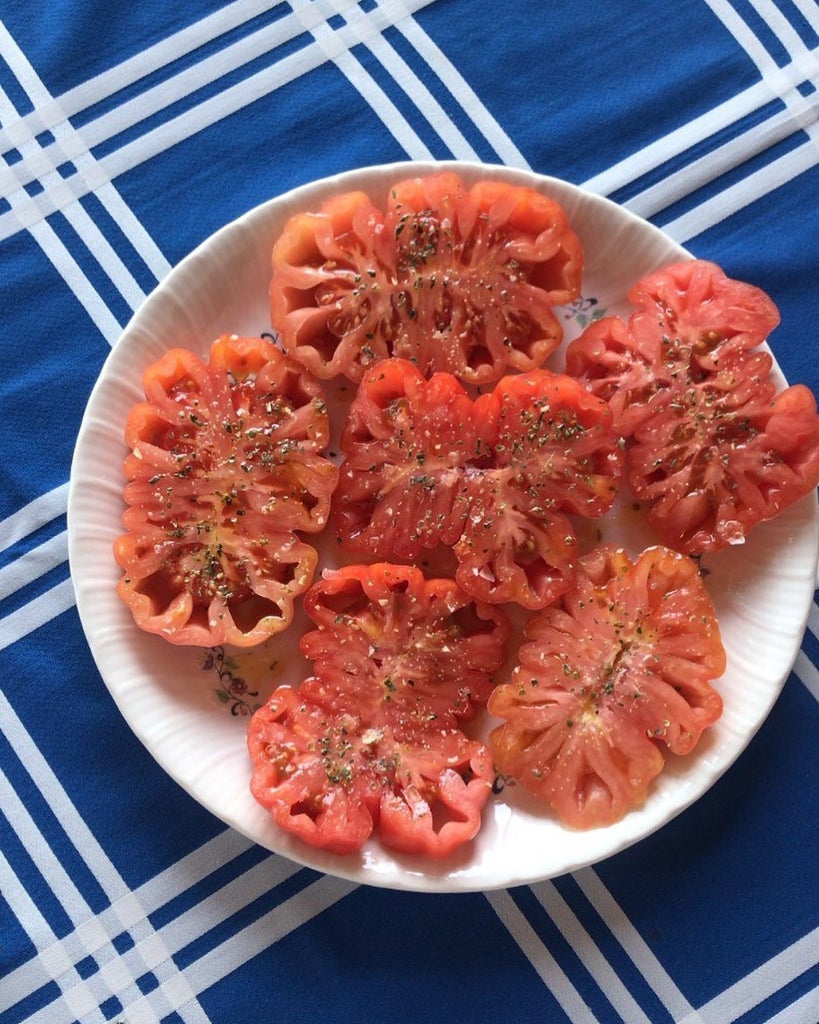 Shots of abundant fruit bowls and blue gingham tablecloths dotted with citrus fruits have become a staple among influencers rooting around for beauty in lockdown, a 21st century incarnation of the still life. Beyond the aesthetic, Burks highlights the transporting ability of fresh produce: “[It] can be so evocative of places and can prompt memories of past experiences, and with our ability to travel hampered at the moment, perhaps fruit and vegetables can remind us of past excursions and can take us to other geographies, in our minds at least!” Anderson’s marrows, Alexandra’s cherries and Collina Strada’s strawberries can at least feed our imagination.